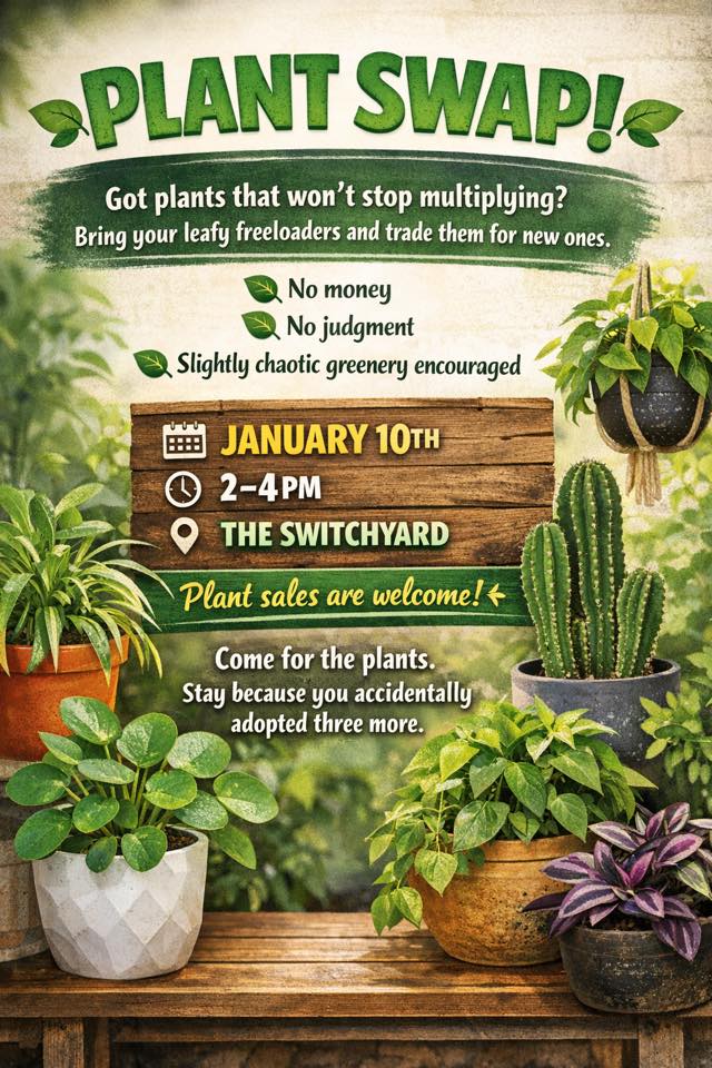 Inviting all Plant hoarders! We are doing a plant swap at the YARD. People are encouraged to bring trades like cuttings,seeds, pots, etc. sales are welcome as well! There will be snacks, beer, and sodas available for purchase!
