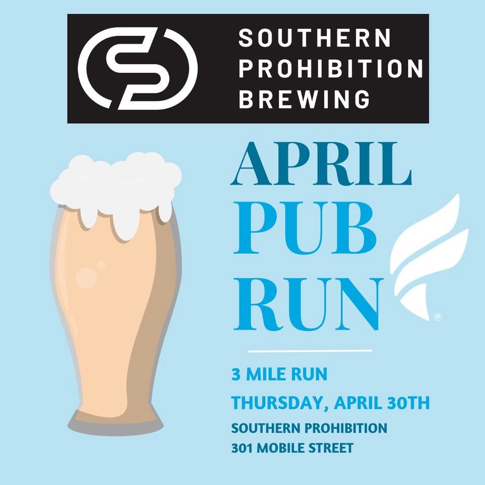 Hang with us downtown at Southern Prohibition for a 3 mile run! After you get some miles in, enjoy locally brewed beer and good food together. Our Pub Runs are a great way to wrap up the month and hang out with a community of runners.