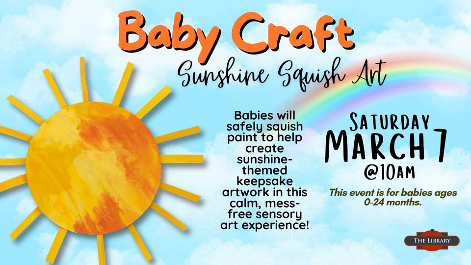 Babies will safely squish paint to help create sunshine-themed keepsake artwork in this calm, mess-free sensory art experience! This event is for babies ages 0-24 months.