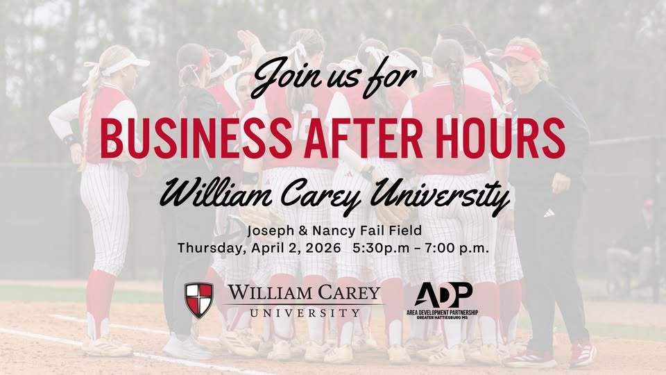 Join us April 2 at the William Carey Softball Game for an evening of networking, fresh air, and cheering on the Crusaders. It’s a fun and relaxed way to connect with other Chamber members while enjoying a great night of softball.