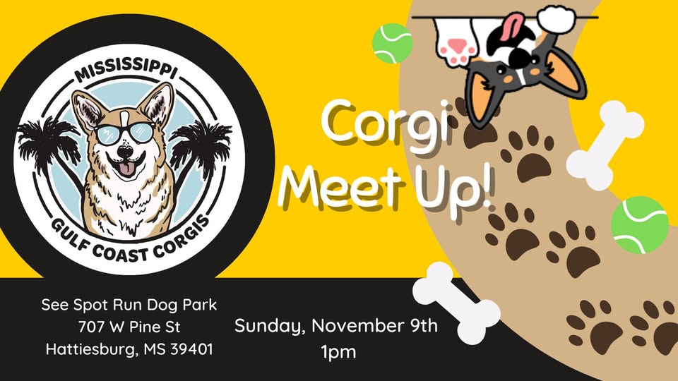 Come join Mississippi Gulf Coast Corgis for a Meet Up at See Spot Run Dog Park in Hattiesburg!