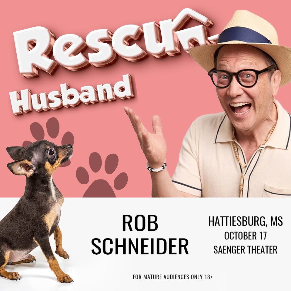 Actor, comedian, screenwriter and director Rob Schneider is bringing his Rob Schneider: Rescue Husband tour to Hattiesburg’s historic Saenger Theater on Friday, October 17th at 7:30 PM! This show was originally scheduled for March 14th.